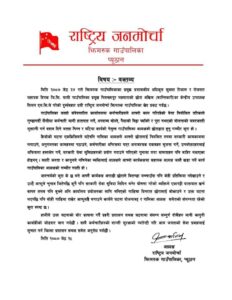 विहिवार निजामती कर्मचारी संगठन जिल्ला कार्यसमिति प्यूठानले विज्ञप्ति निकालेकाे छ।