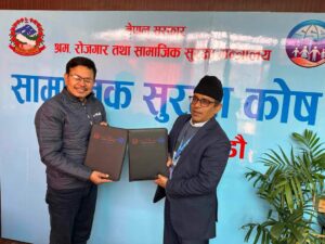 श्रमिकलाइ सामाजिक सुरक्षा कोषमा आबद्द गराउन ऐरावती गाउपालिका र कोष बिच सम्झौता
