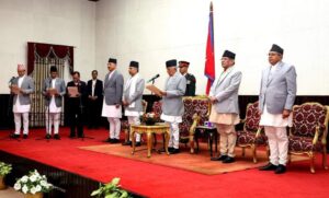 सोमबार साँझ राष्ट्रपति रामचन्द्र पौडेलले नेकपा एमालेका पदम गिरी, नेकपा माओवादी केन्द्रका हितबहादुर तामाङ र राष्ट्रिय स्वतन्त्र पार्टीका डीपी अर्यालले शपथ लिएका हुन् ।