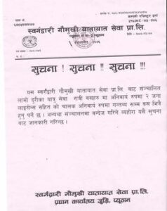 सुचनामा उल्लेख भएअनुसार व्यवसायीले नियम विपरित सवारीसाधन संचालन गरेको पाएइएमा सवारीसाधन संचालनमा बन्देज गरिने जानकारी गराइएको छ ।