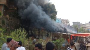 मटिहानीमा भीषण आगो लाग्दा सय बढी घर जले