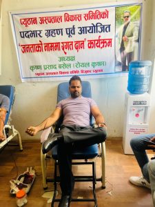 रक्तदानबाट पदभार : प्यूठान अस्पताल विकास समितिका नवनियुक्त अध्यक्ष कृष्ण प्रसाद बस्सेलको जनसेवा प्रतिको फरक शैली